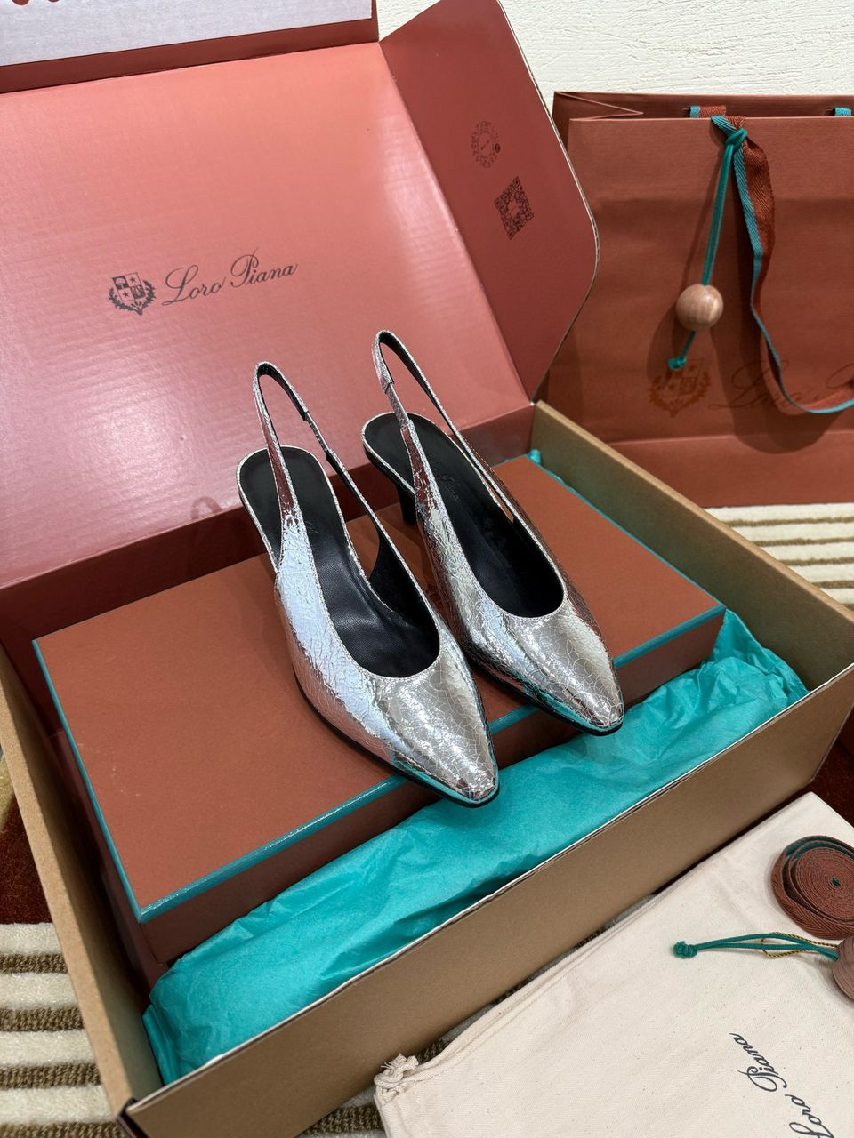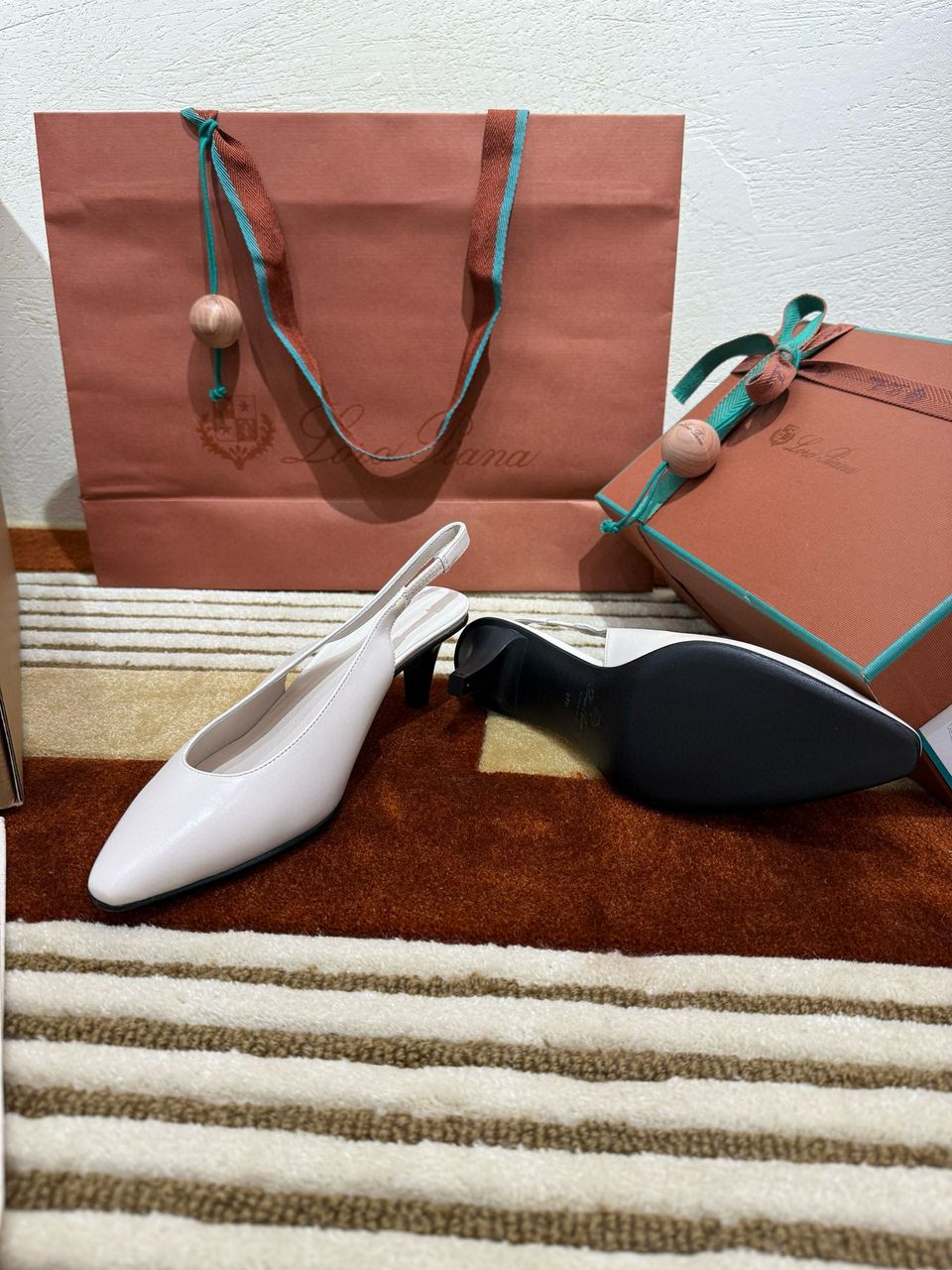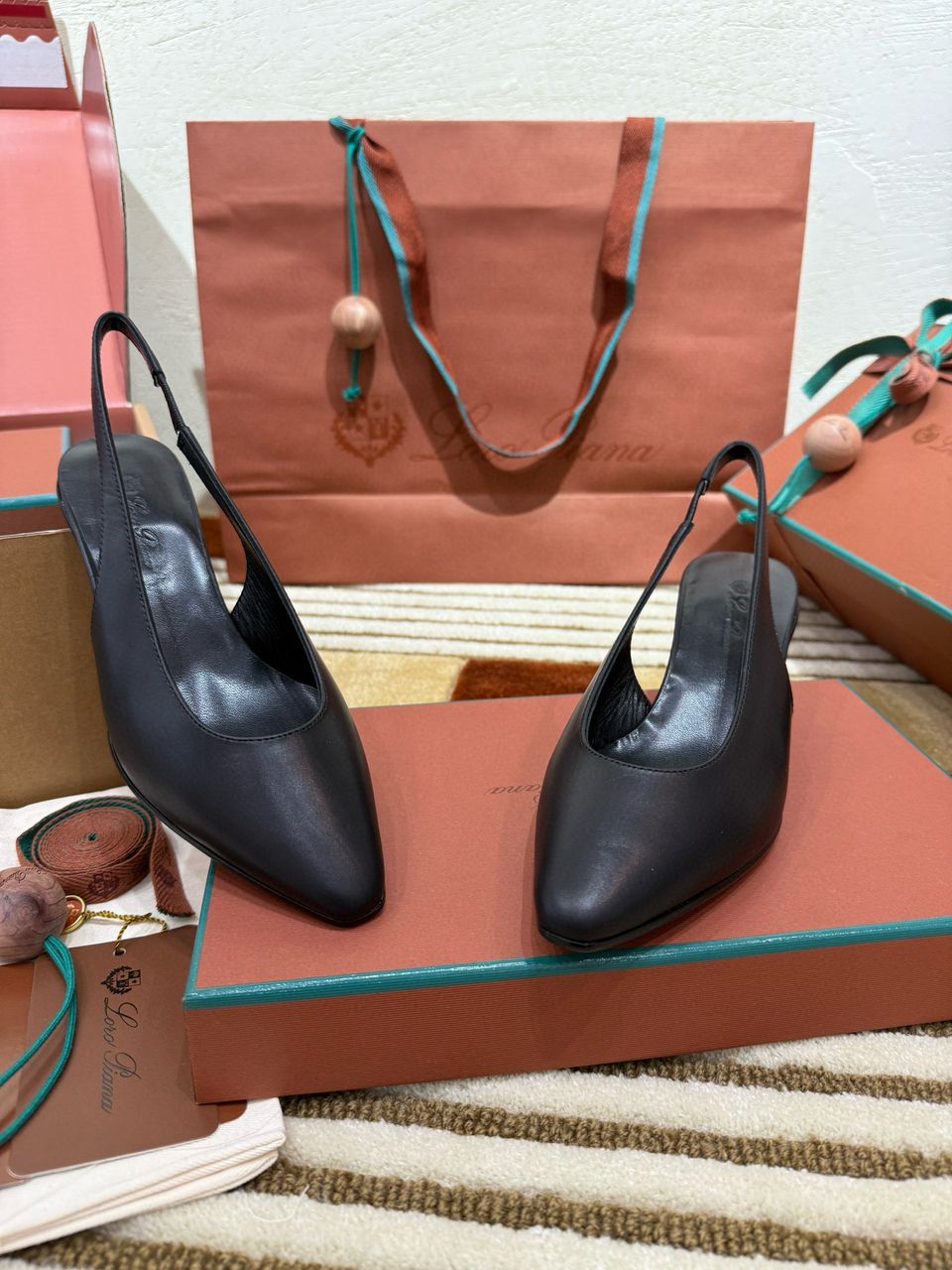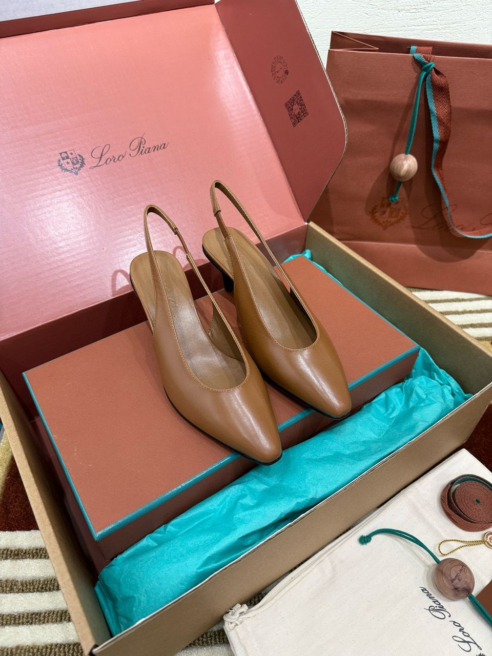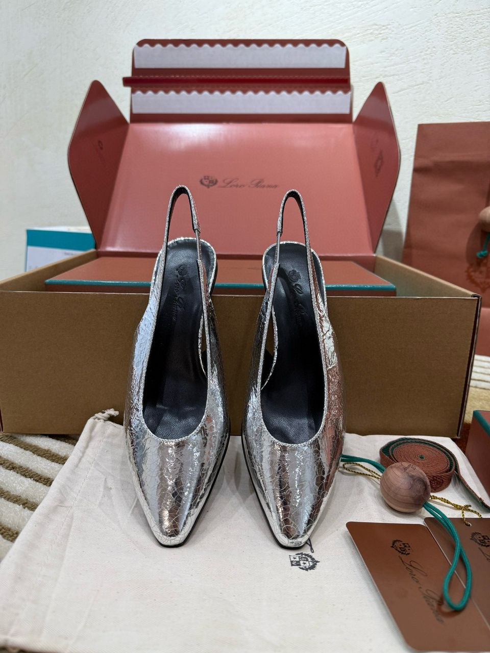 These slingbacks are part of the Rebecca line, defined by soft contours and pointy toes. They are crafted from calfskin with a unique finish, making them extremely soft while preserving the natural qualities of the leather. Their slightly lived-in look adds a touch of sophisticated elegance, while their versatile, feminine style makes them perfect in casual-chic outfits.