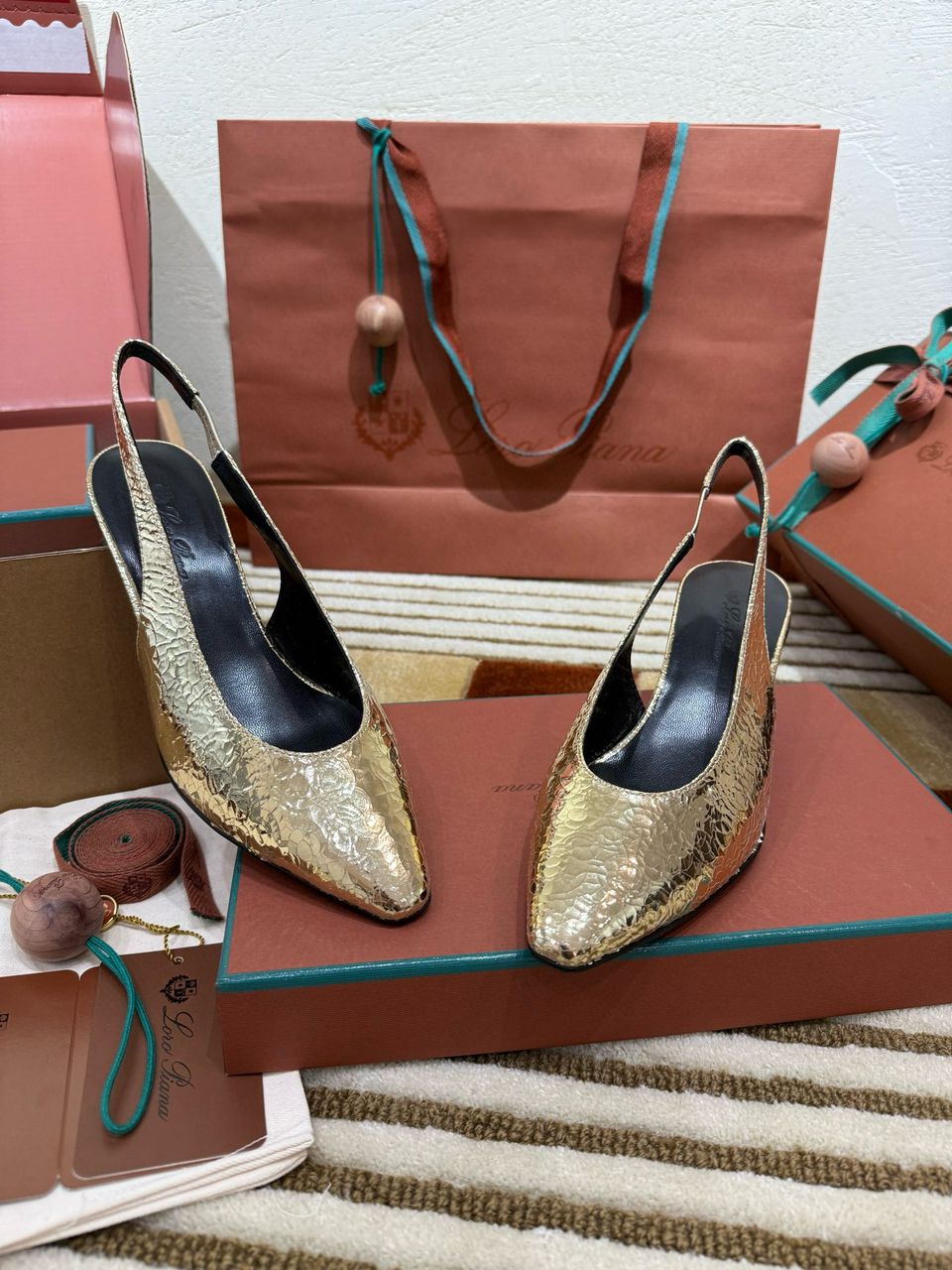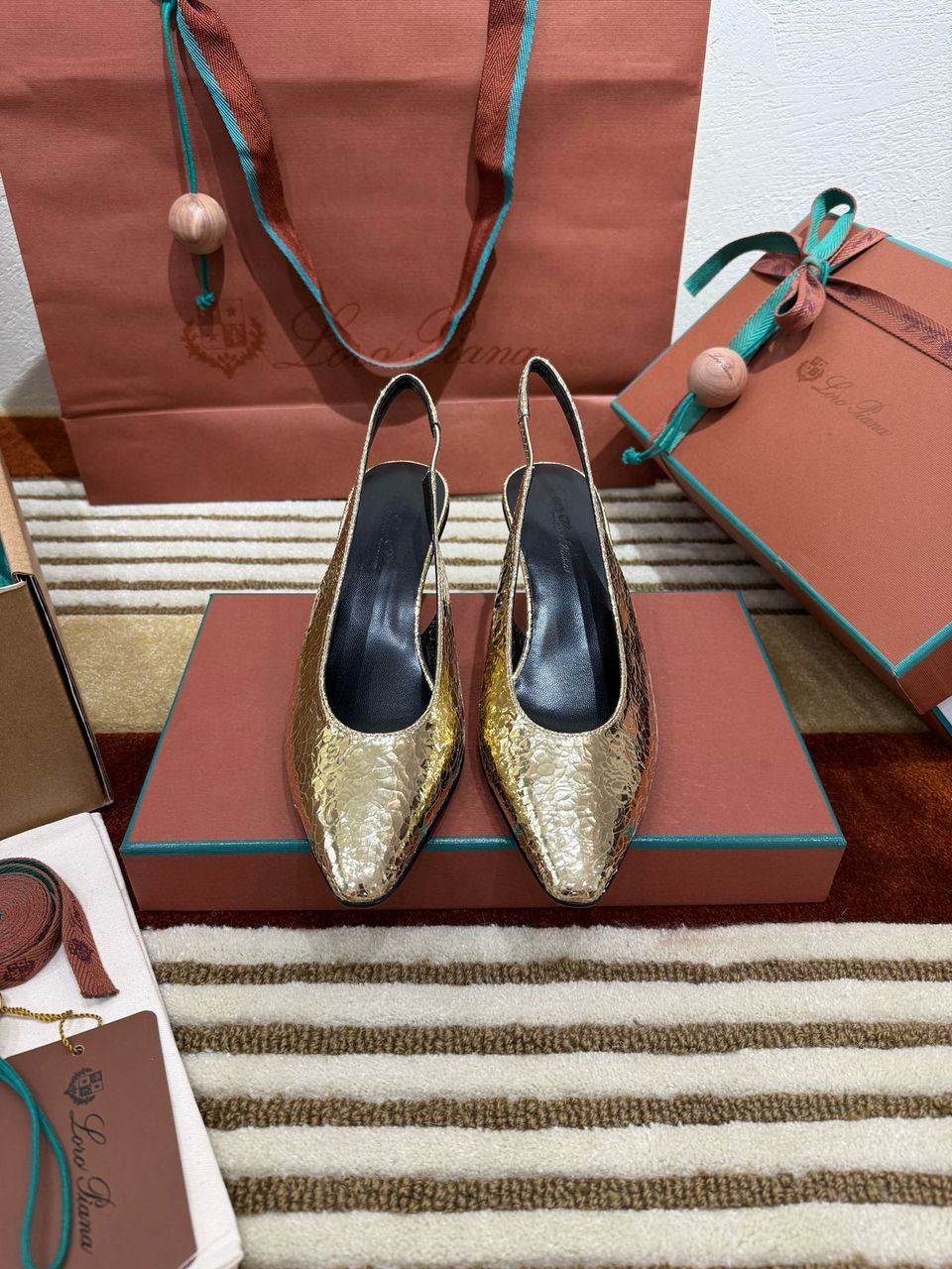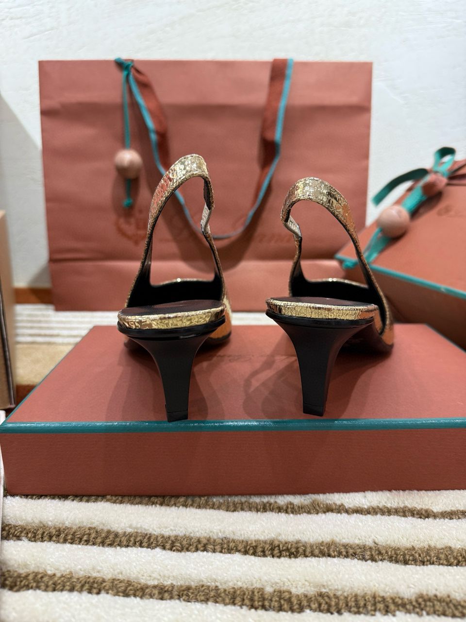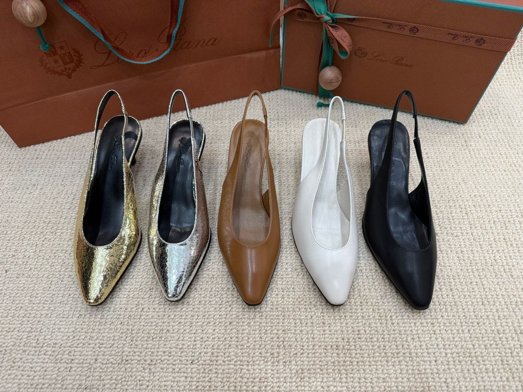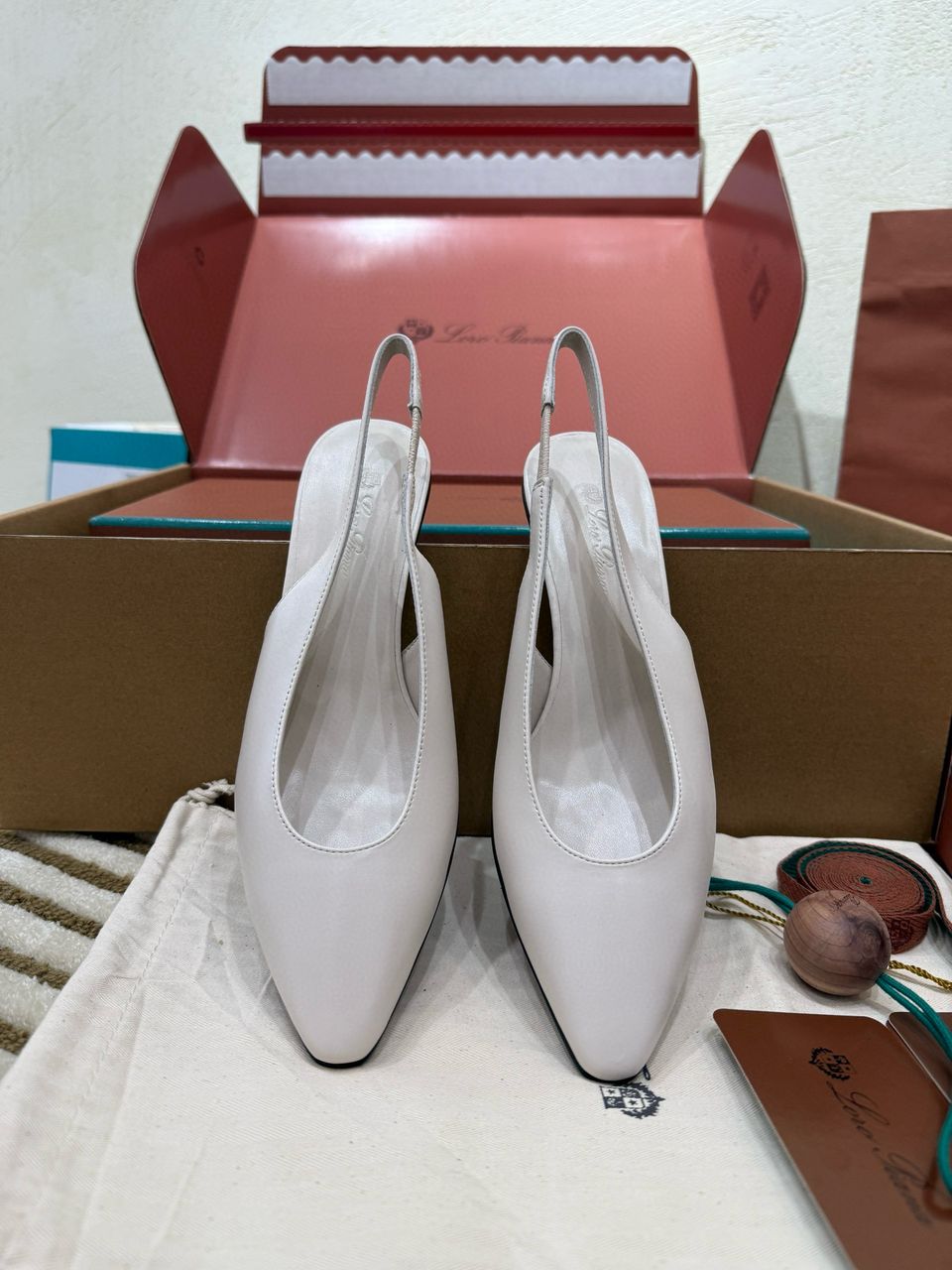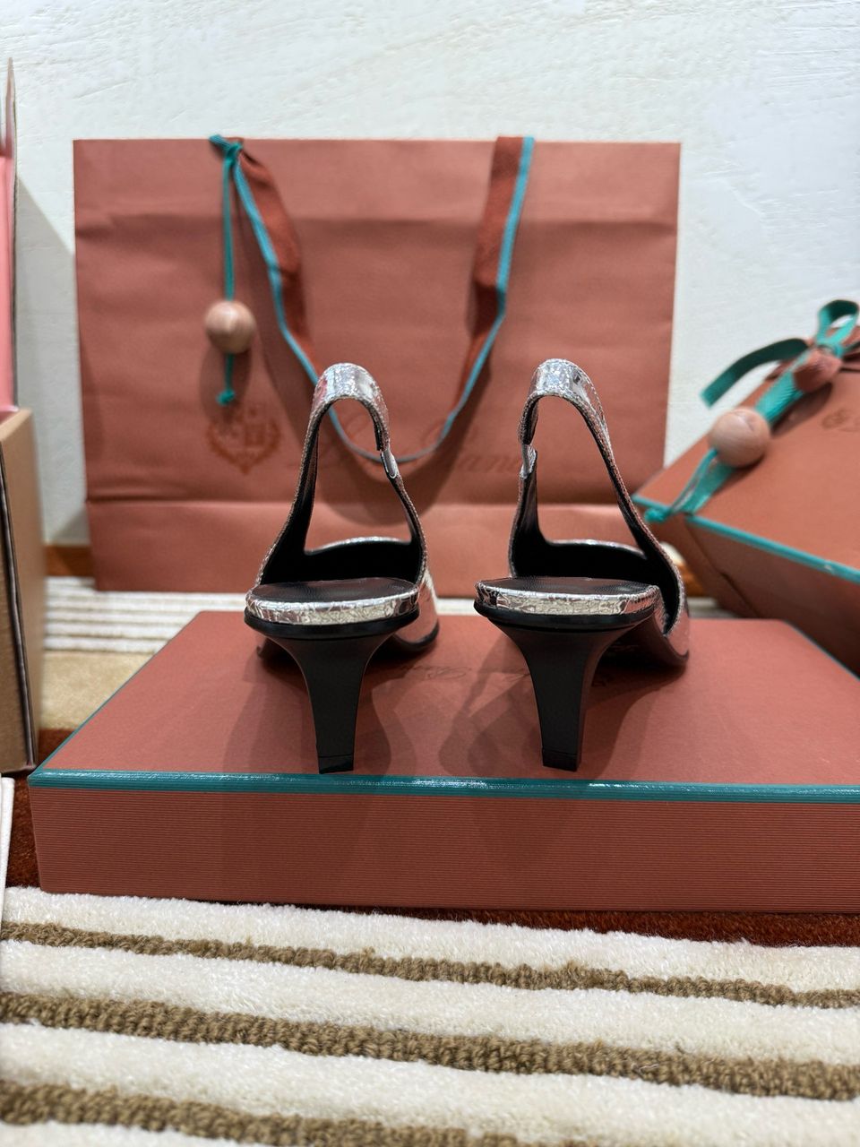 These slingbacks are part of the Rebecca line, defined by soft contours and pointy toes. They are crafted from calfskin with a unique finish, making them extremely soft while preserving the natural qualities of the leather. Their slightly lived-in look adds a touch of sophisticated elegance, while their versatile, feminine style makes them perfect in casual-chic outfits.