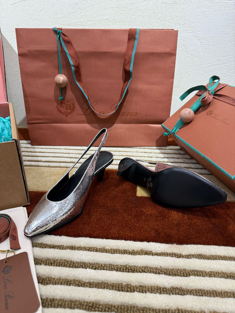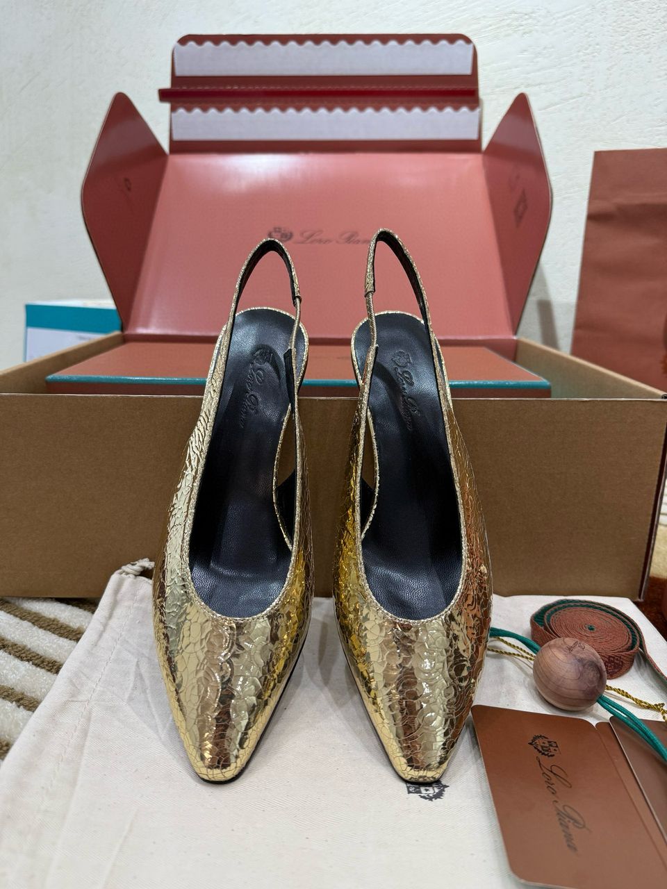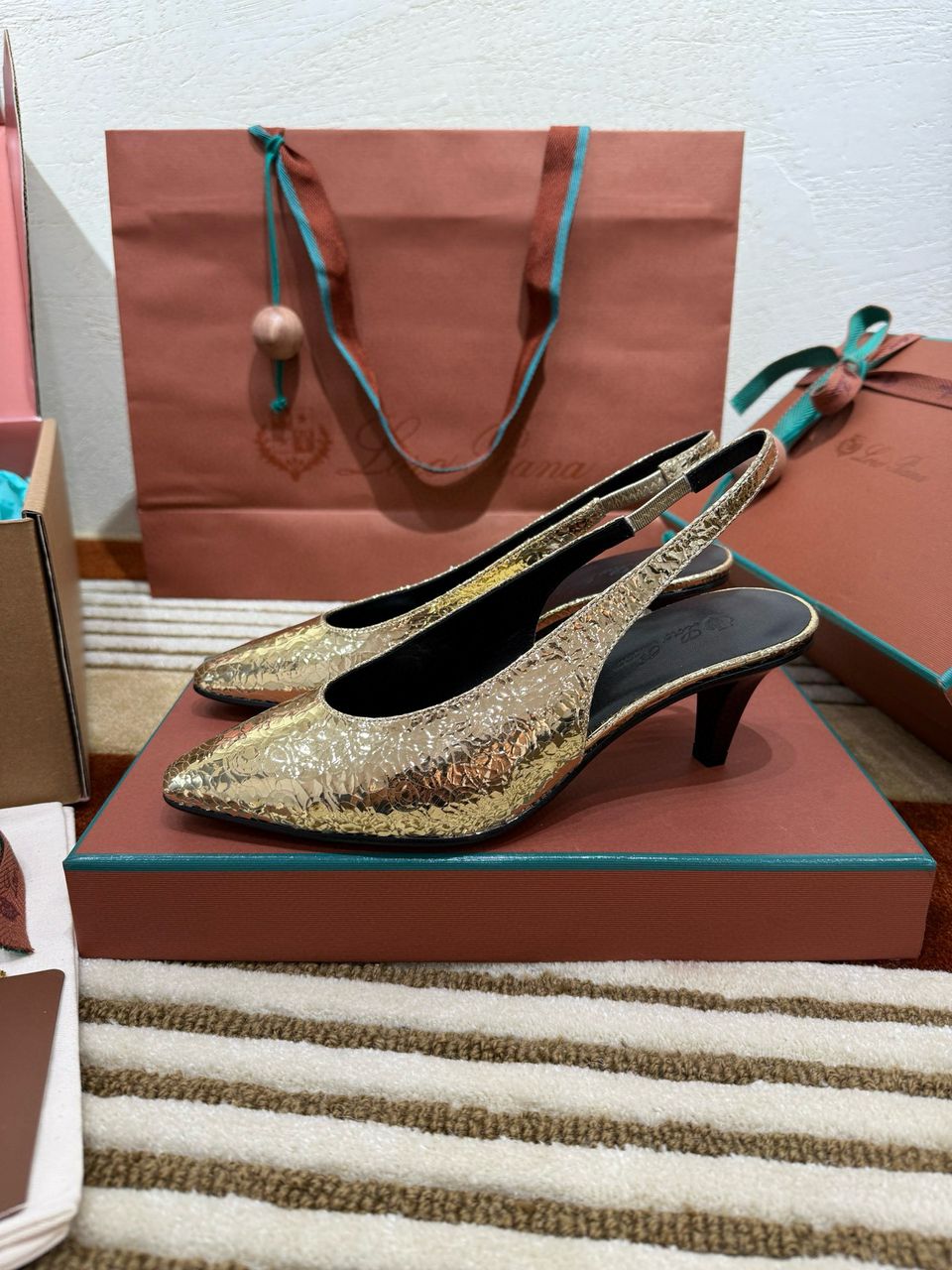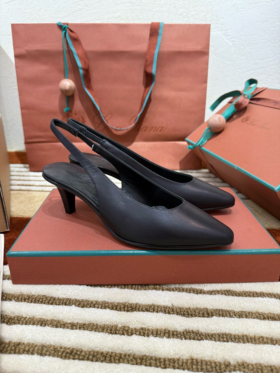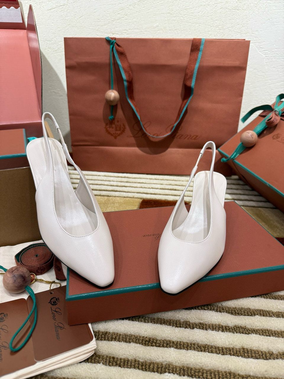These slingbacks are part of the Rebecca line, defined by soft contours and pointy toes. They are crafted from calfskin with a unique finish, making them extremely soft while preserving the natural qualities of the leather. Their slightly lived-in look adds a touch of sophisticated elegance, while their versatile, feminine style makes them perfect in casual-chic outfits.