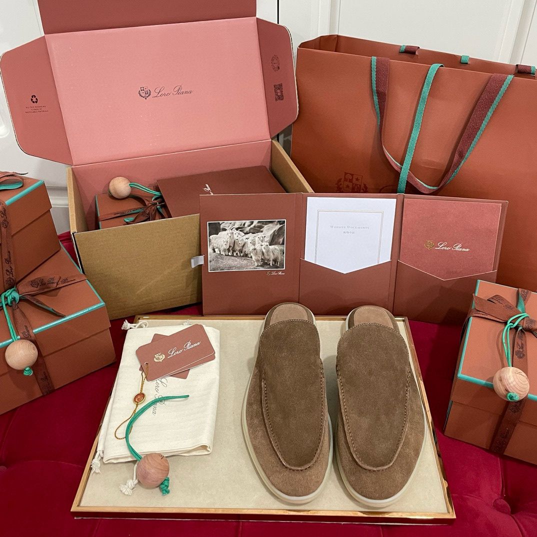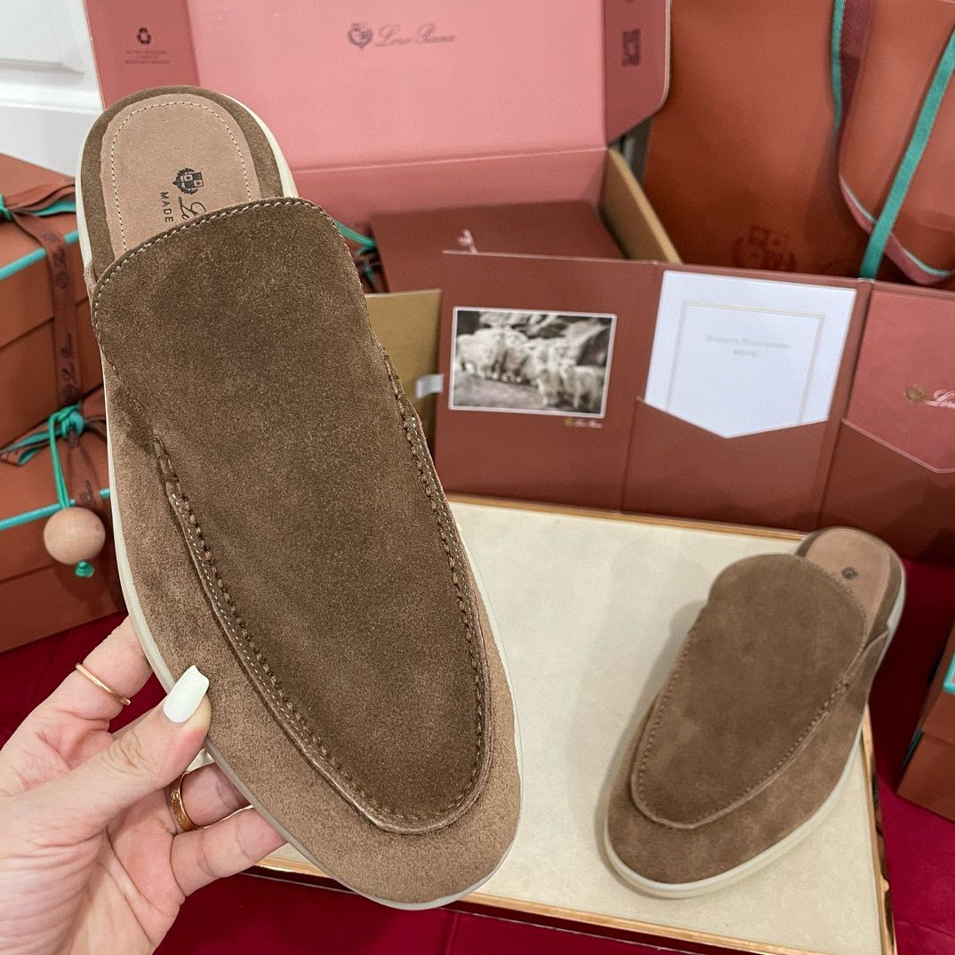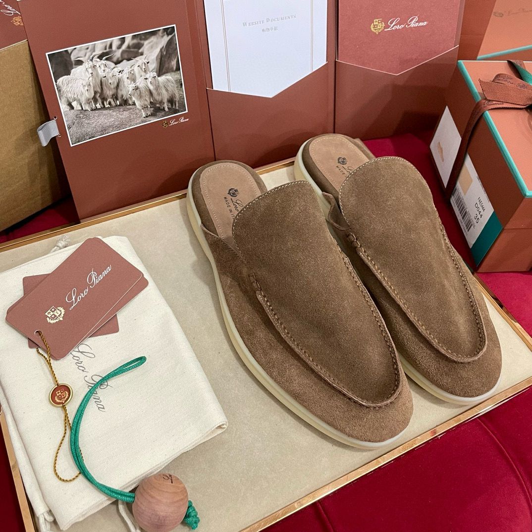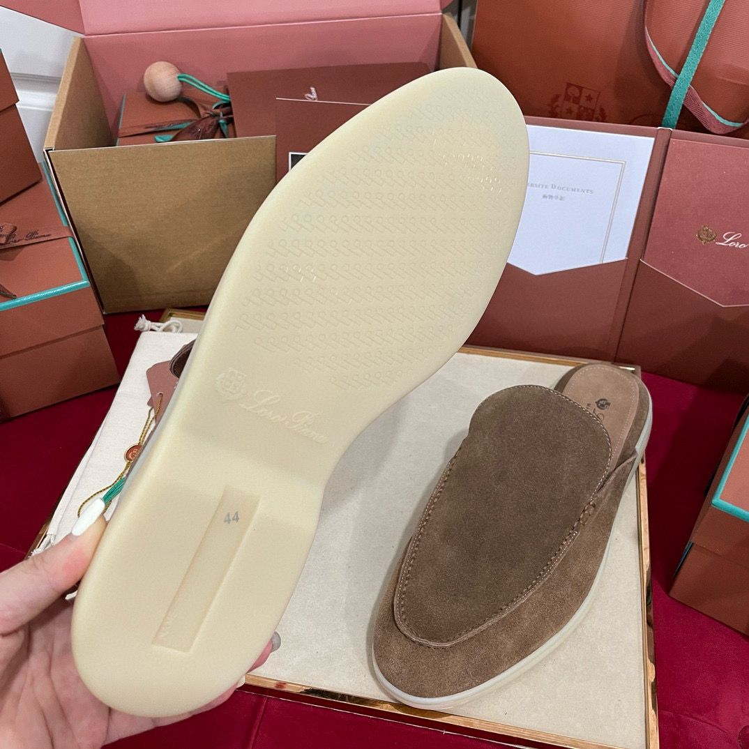 Slipper version of the iconic Summer Walk loafer made from unlined suede. They feature a dedicated space on the heels where you can write your name — a hallmark feature of Loro Piana’s sportswear shoes, inspired by the world of sailing.