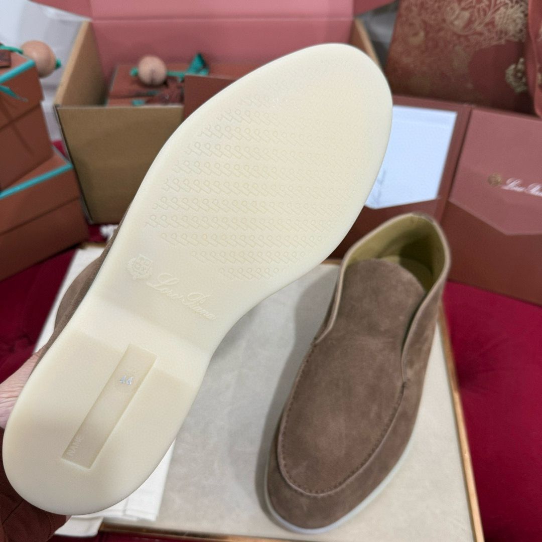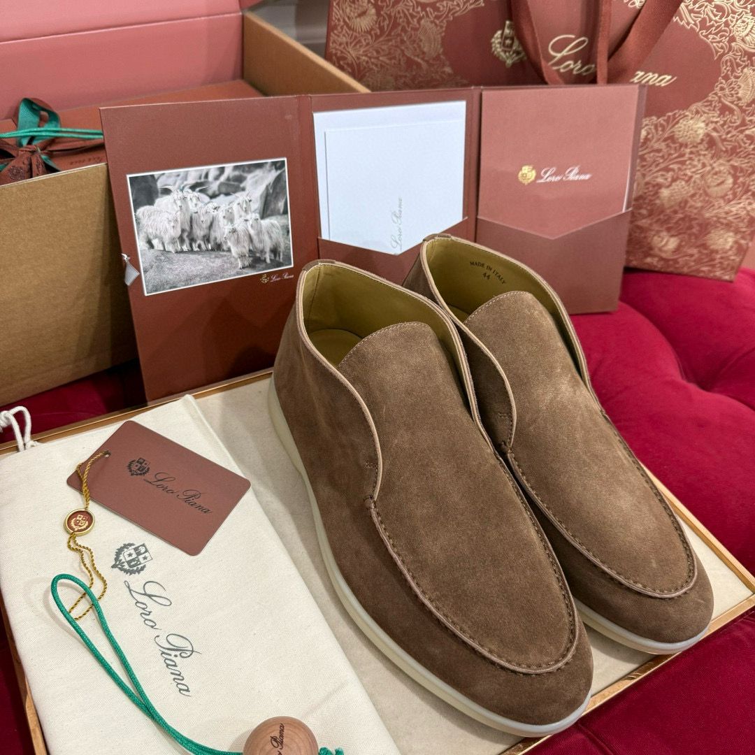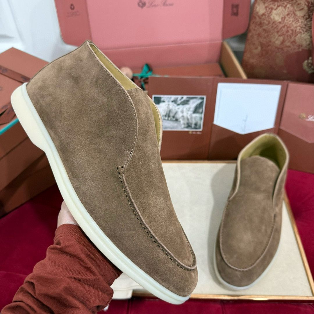 Classic Loro Piana ankle boots made from suede with a nappa calfskin interior. A patented opening with elastic hidden under the tongue guarantees an extremely comfortable fit. Perfect in formal or sportswear looks.