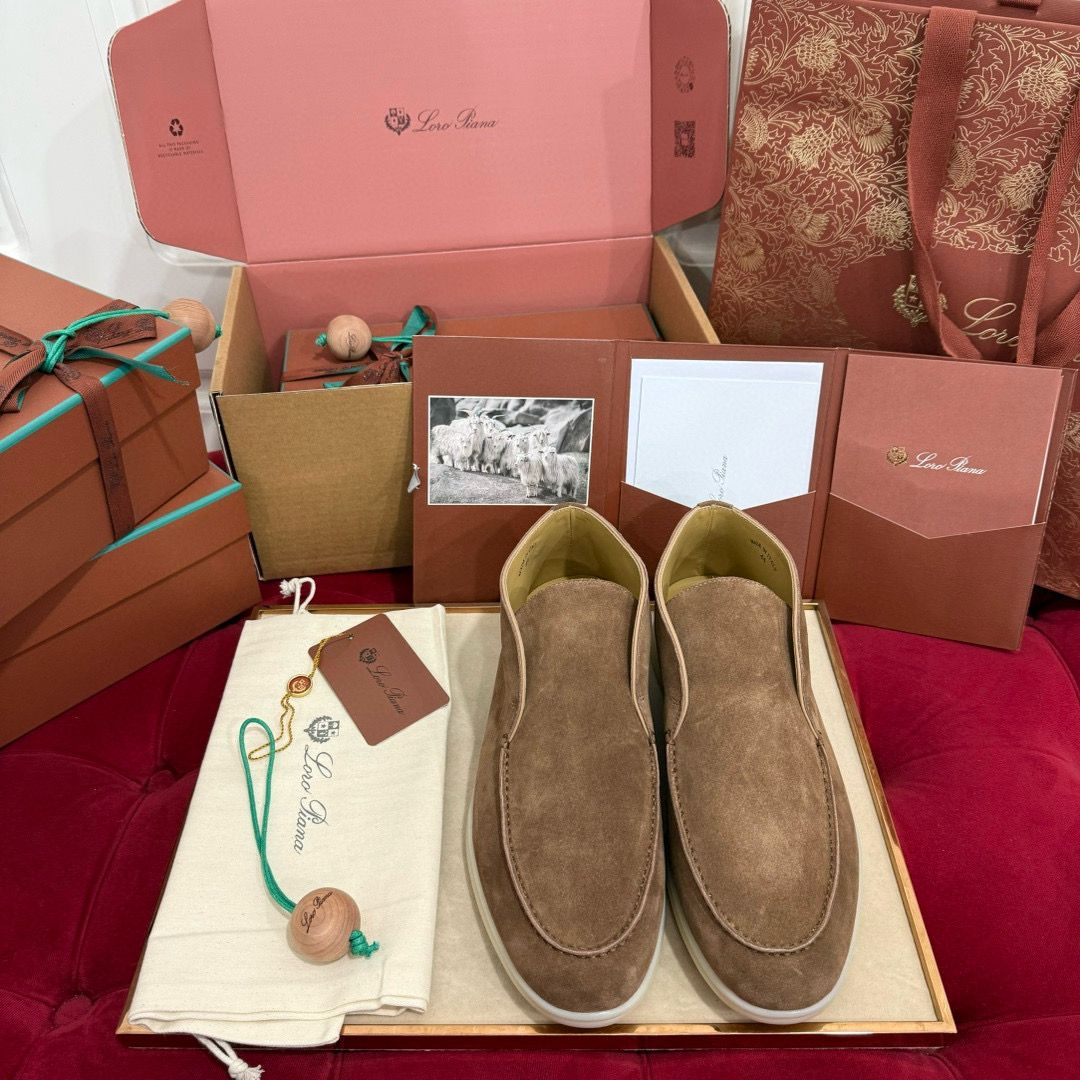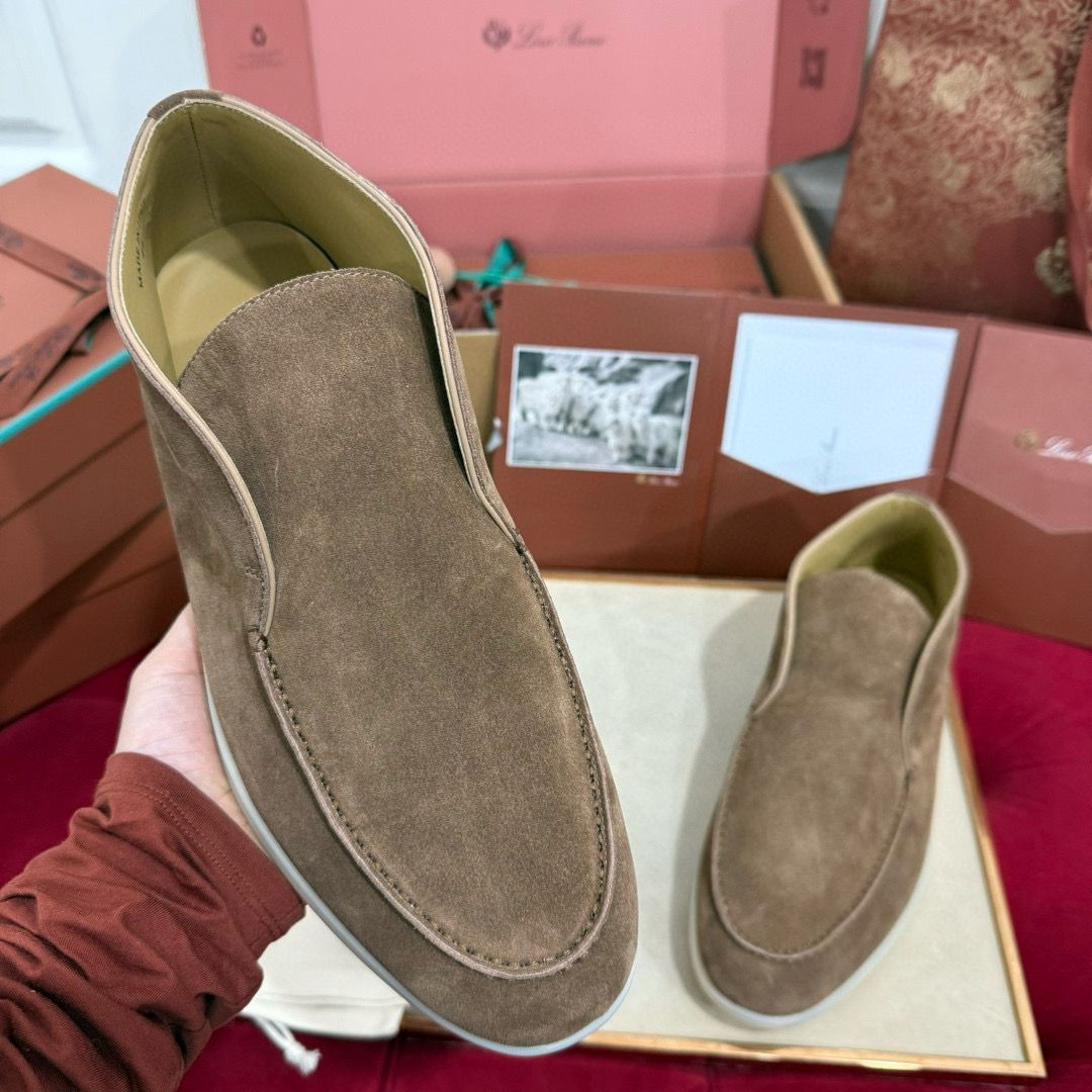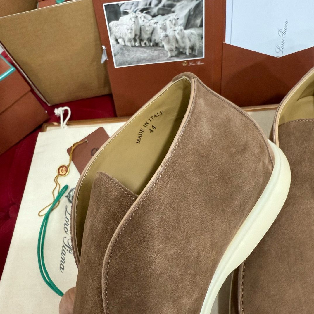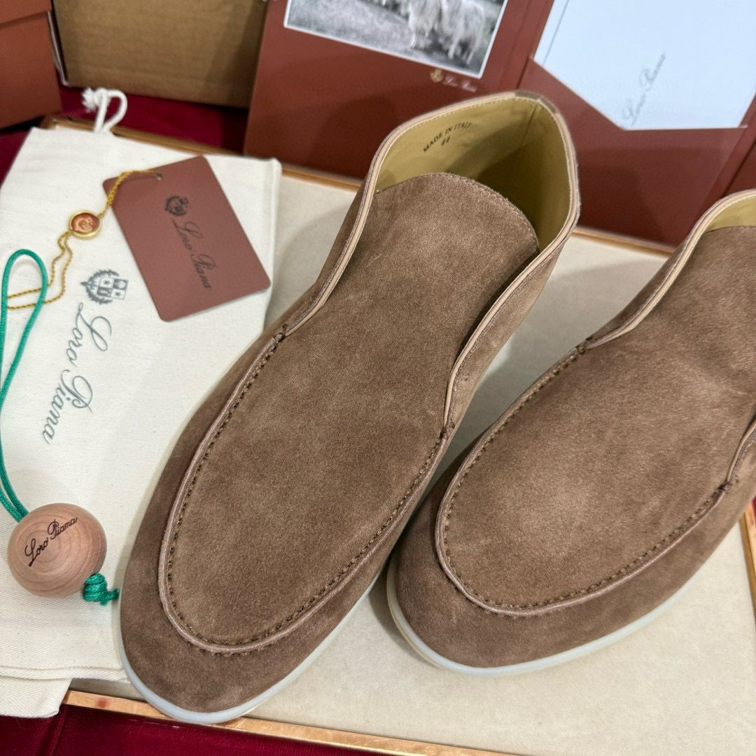Classic Loro Piana ankle boots made from suede with a nappa calfskin interior. A patented opening with elastic hidden under the tongue guarantees an extremely comfortable fit. Perfect in formal or sportswear looks.